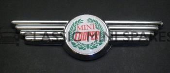 The last mini winged shape logo from Rover fitted about 1996-2000 on all late mini coopers bonnet and boots.